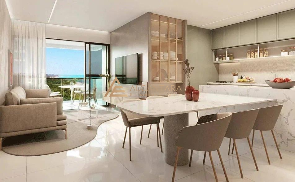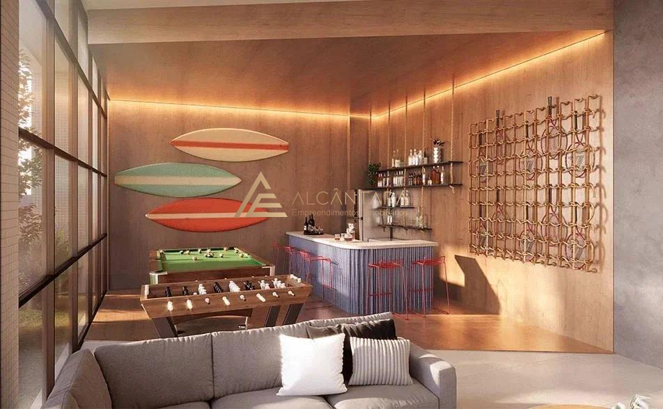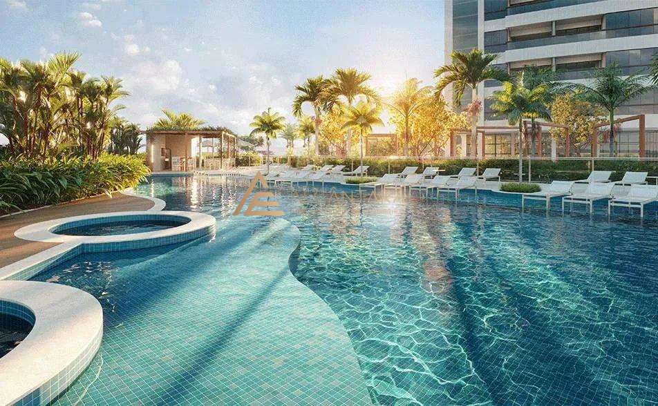 Destaques: Todas as unidades com varanda gourmet, espaço gourmet integrado à piscina, um hall para cada torre, áreas comuns equipadas e mobiliadas, placas solares atendendo a parte das áreas comuns, três piscinas, áreas de convivência totalmente integradas e estrutura de acesso direto à praia.